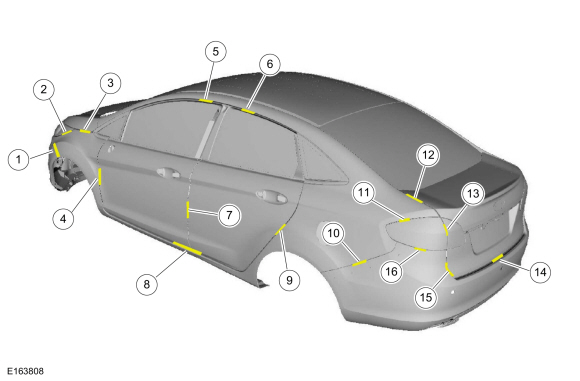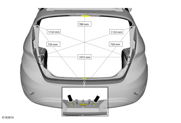 | 14 | Крышка багажника к задней панели (нижняя) | 6,0 мм (0,236 дюйма) ± 2,0 мм (0,078 дюйма) | — |