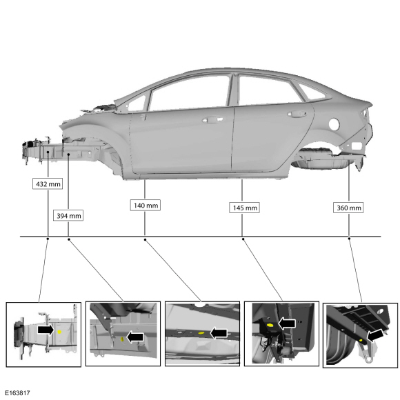 ПРИМЕЧАНИЕ: Все размеры указаны по центру, если не указано иное. Размеры относятся к 4-дверному седану и 5-дверному хэтчбеку.