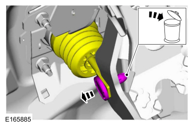 Снимите выключатель деактиватора круиз-контроля.ПРИМЕЧАНИЕ: Стопорный штифт штока толкателя усилителя представляет собой одноразовое использование только часть. Каждый раз, когда стопорный штифт толкателя усилителя снят, следует использовать новый стопорный штифт штока толкателя усилителя.
