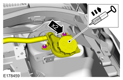 С помощью подходящего всасывающего устройства удалите тормозную жидкость из выносного бачка, а затем отверните гайки.