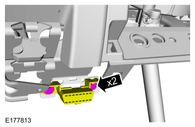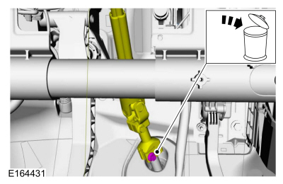 УВЕДОМЛЕНИЕ: Не допускайте вращения рулевой колонки во время вал рулевой колонки отсоединен или может быть повреждена часовая пружина. результат. Если есть признаки того, что вал рулевой колонки провернулся, снимите и повторно отцентрируйте часовую пружину. См. раздел 501-20B.