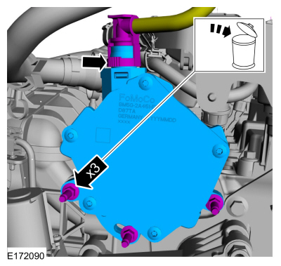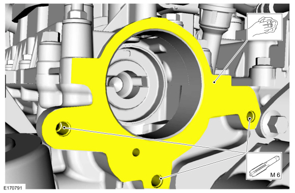 УВЕДОМЛЕНИЕ: Если вакуумный насос тормозов не зафиксировать в течение 10 минут после нанесения герметика, герметик необходимо удалить и площадь уплотнения очищена с помощью подготовки металлической поверхности. Несоблюдение этого процедура может привести к утечке масла в будущем.
