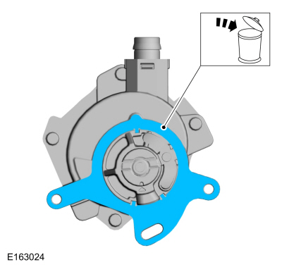 ПРИМЕЧАНИЕ: Перед установкой вручную совместите шпонку привода тормозного вакуумного насоса с прорезью распределительного вала.