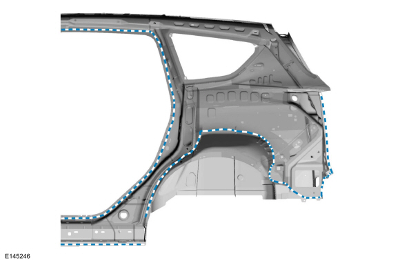 ПРИМЕЧАНИЕ: Полнорамный автомобиль, показан ремонт секции переднего рельса до среднего рельса.