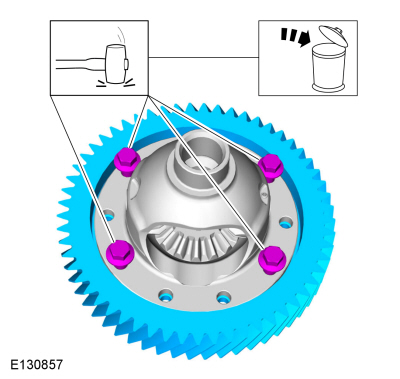 Слегка постучите по болтам, чтобы снять зубчатый венец с дифференциала, и снимите 4 болта.