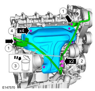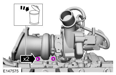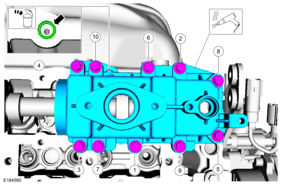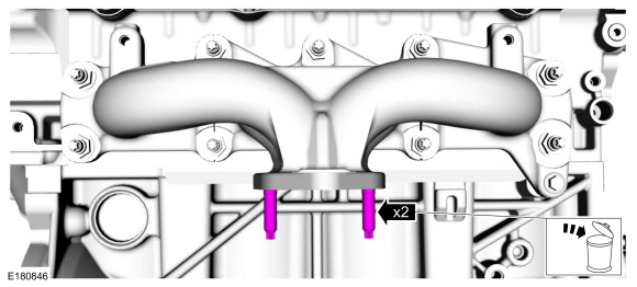 Очистите отверстия под болты масляного насоса с помощью средства Motorcraft® Metal Brake Parts Cleaner, чтобы удалить все остатки масла.