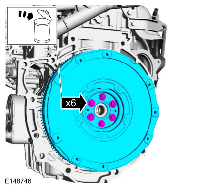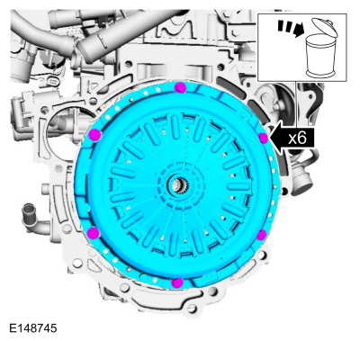 Равномерно ослабьте 6 болтов крепления нажимного диска сцепления к маховику на 2 оборота за раз.