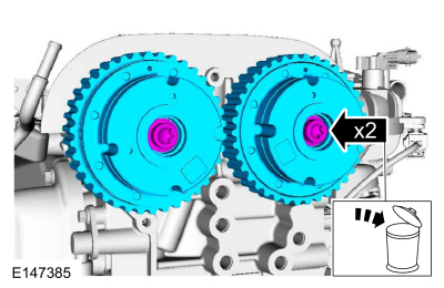 Используйте гаечный ключ с открытым зевом, чтобы удерживать распредвалы за шестигранник, чтобы распредвалы не проворачивались.