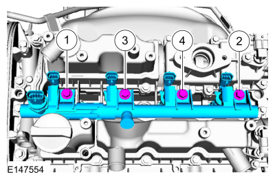 Вытяните топливные рампы в направлении оси топливных форсунок, иначе форсунки могут быть повреждены.