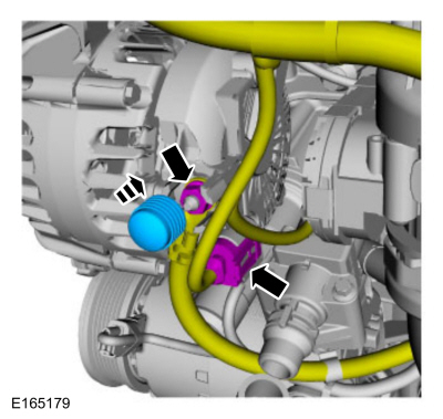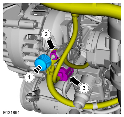 Подсоедините электрический разъем генератора. Расположите Провод B+ и установите гайку клеммы B+. Установите клемму провода B+ защитное покрытие.
