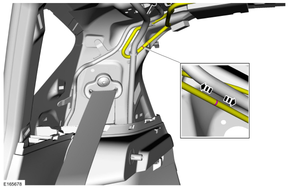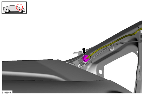 УВЕДОМЛЕНИЕ: Заглушите шланг заднего омывателя после отсоединения. Несоблюдение этого требования приведет к повреждению внутренней части из-за жидкости. утечка.
