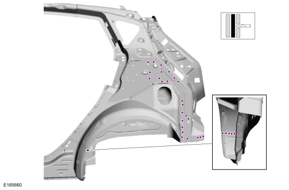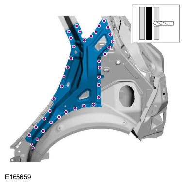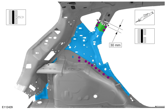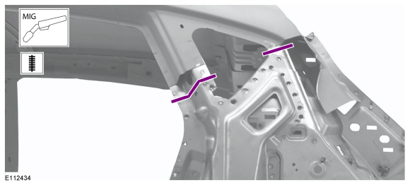 Установите усиливающую боковую панель и точечные сварные швы.