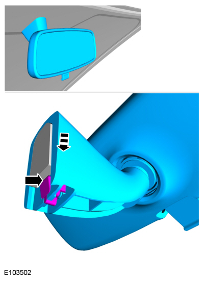 Расположите внутреннее зеркало в сборе, чтобы освободить стопорный язычок.
