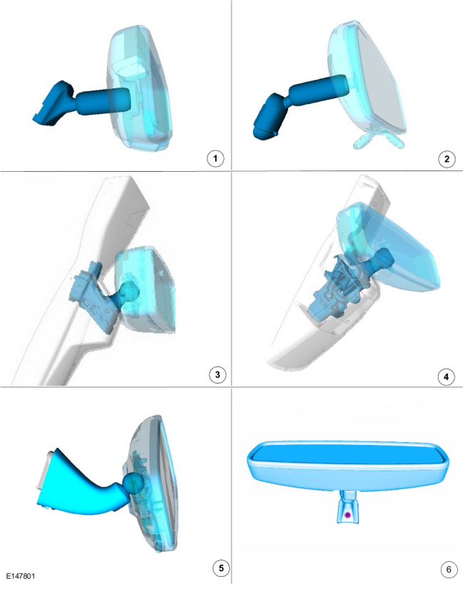 Ford Fiesta: Зеркала заднего вида / Внутреннее зеркало заднего вида. Снятие и установка