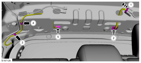 фиксаторы жгута проводов и выведите жгут проводов из двери багажного отделения.