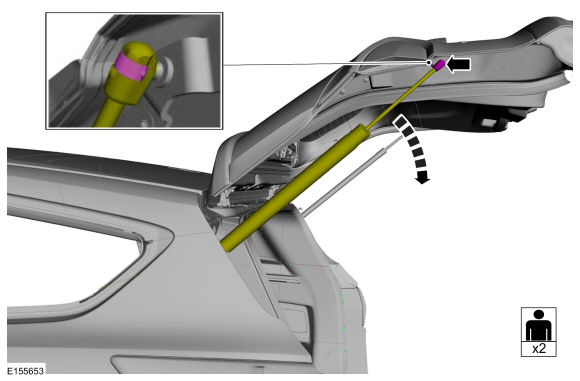 Поддержите дверь багажного отделения, прежде чем отсоединить