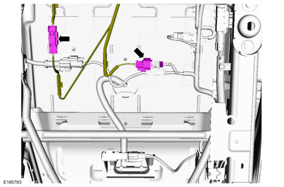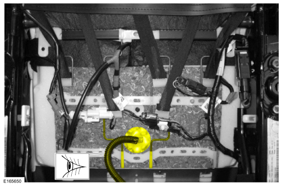 Вытяните шланг OCS и датчик из-под проводов опоры подушки сиденья и снимите OCS.