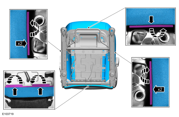 УВЕДОМЛЕНИЕ: Будьте осторожны при отделении обшивки подушки сиденья. чехол из полосок на липучке или полосок на липучке может быть оторвало поролоновую прокладку подушки сиденья.