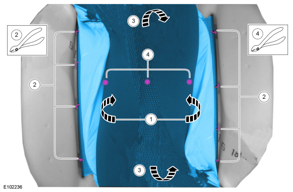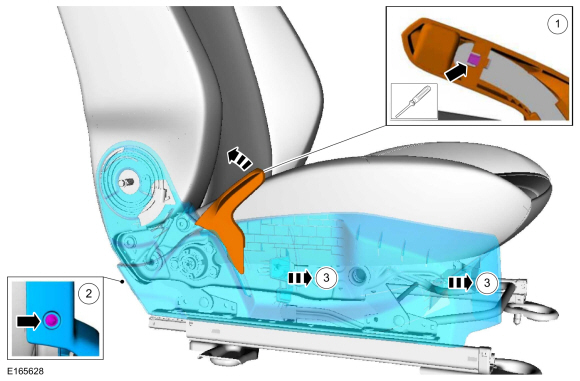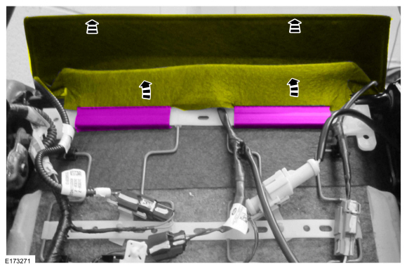 УВЕДОМЛЕНИЕ: Коврик обогревателя подушки на переднем боковом пассажирском сиденье отдельно не обслуживается. Если требуется новый нагревательный мат подушки на сиденье переднего пассажира, установите сервисный комплект OCS с обогревателем мат. Несоблюдение этой инструкции может привести к неправильному работа ОКС.