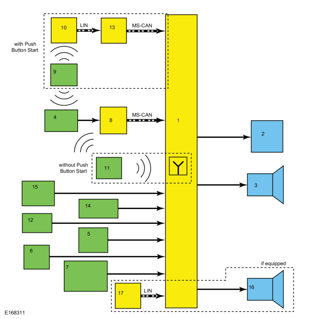 BCM отслеживает входные данные от датчика вторжения через LIN. схема. BCM активирует периметральную сигнализацию при несанкционированном проникновении. обнаруживается датчиком проникновения.