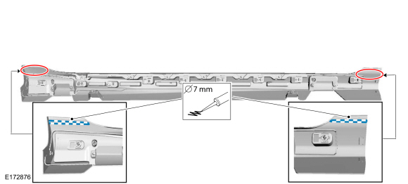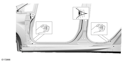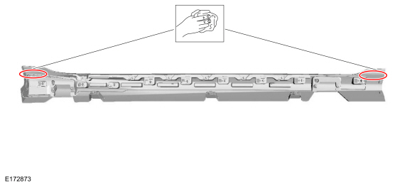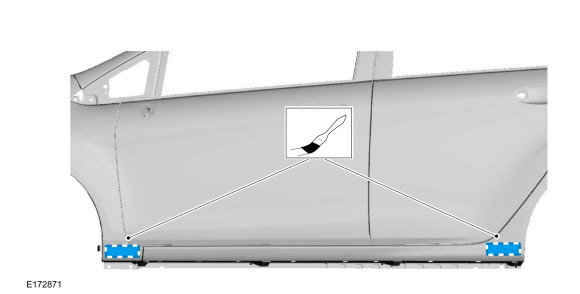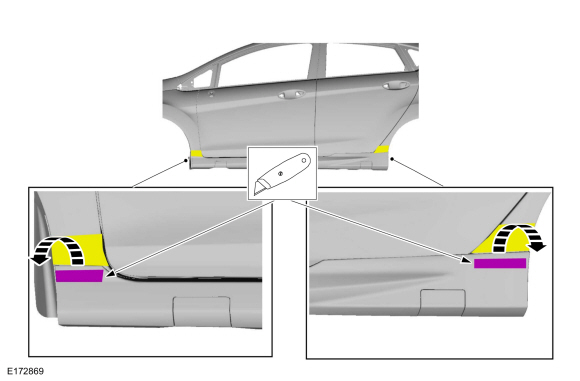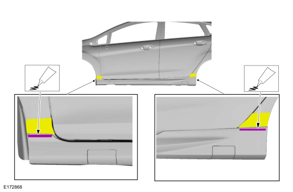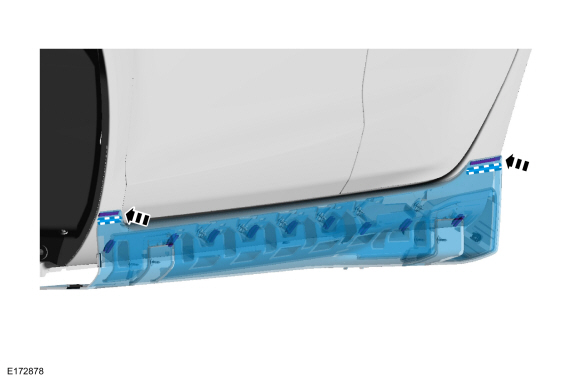 Снимите прокладку(и) клейкой ленты и прижмите концы панели порога, чтобы приклеить панель балансира к металлическому листу автомобиля.