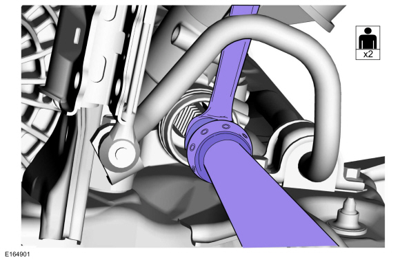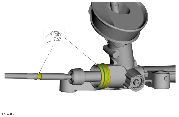УВЕДОМЛЕНИЕ: Установите рулевой механизм в центральное положение и удерживайте рулевую рейку, ослабляя или затягивая внутреннюю стяжку стержень. Используйте гаечный ключ соответствующего размера на плоской поверхности/зубцах стойки, чтобы сопротивляться вращению и предотвращать повреждения при удалении внутренней стяжки стержень.