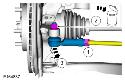 ПРИМЕЧАНИЕ: Сосчитайте и запишите количество оборотов, необходимое для снимите внешний конец рулевой тяги для справки во время установки.