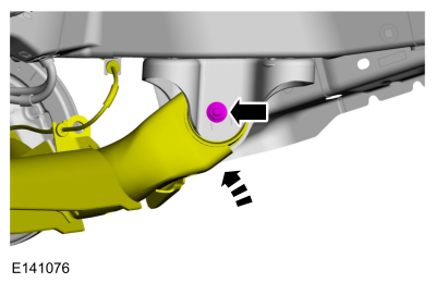 Опустите заднюю ось в сборе, снимите и выбросьте гайку и болт продольного рычага.