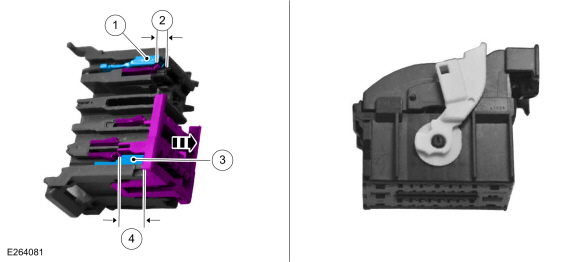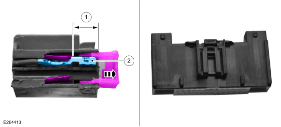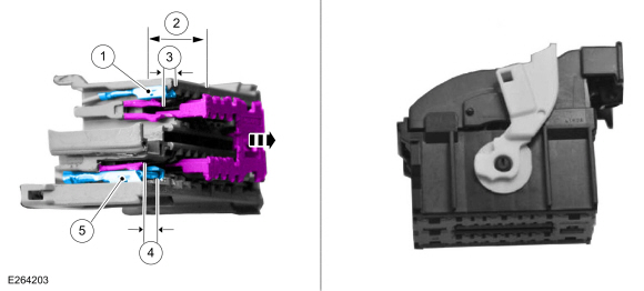 ПРИМЕЧАНИЕ: Информация о жесткой оболочке соединителя, которая измеряется в миллиметрах и представляет собой расстояние от передней поверхности разъема к точке зацепления на выступе фиксатора клеммы. Отметить расстояние, указанное на инструменте для снятия клемм, перед снятием Терминал.