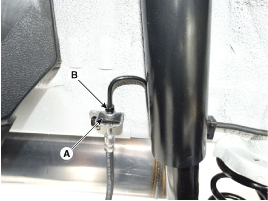 Отсоедините тормозной шланг, ослабив болты (А) и (В).