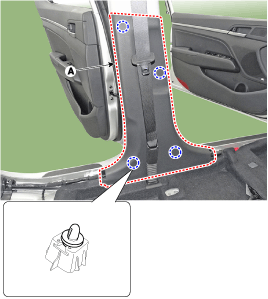 С помощью отвертки или съемника снимите верхнюю облицовку центральной стойки (А).