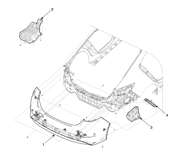 Компоненты крышки заднего бампера и расположение компонентов