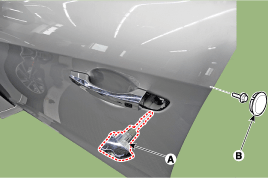 Снимите наружную ручку передней двери (А), сдвинув ее вперед.