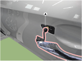 Отсоедините разъем наружной ручки передней двери (А), нажав на стопорный штифт.