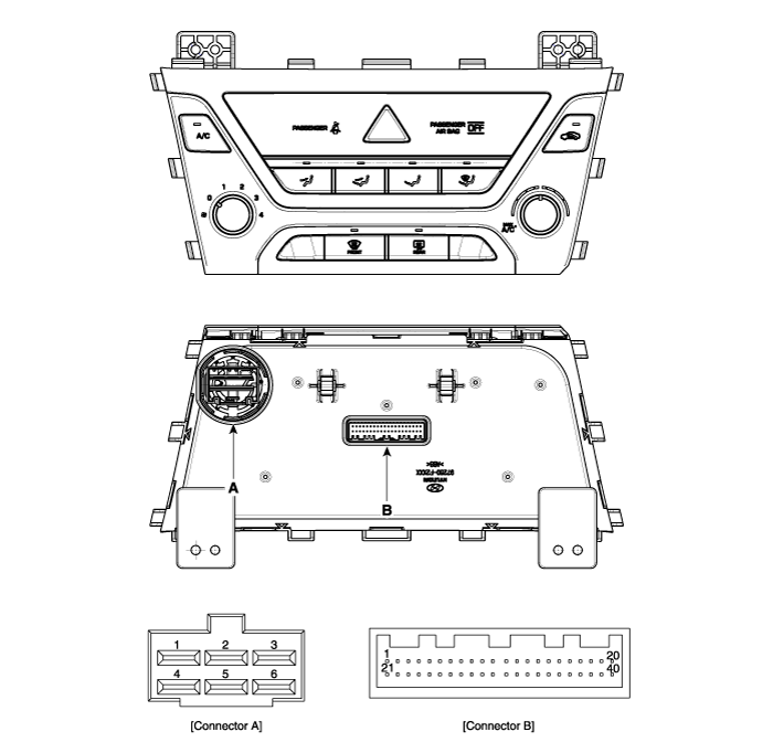 Hyundai Elantra AD (2016-2020) Руководство по ремонту / Отопление, вентиляция, кондиционирование / Контроллер / Блок управления отопителем и кондиционером (ручной) Компоненты и расположение компонентов