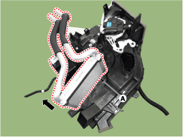 Вытяните сердечник отопителя (А) из блока отопителя.