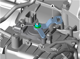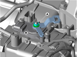 Слегка затяните гайку (А) после установки рычага ручного управления (В).