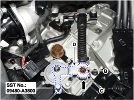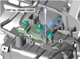Извлеките направляющий штифт переключателя блокировки (SST №: 09480-A3800) из отверстия.