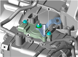 Затяните гайку (А) и болты (В) с указанным моментом.