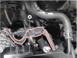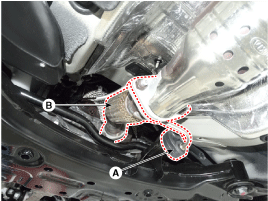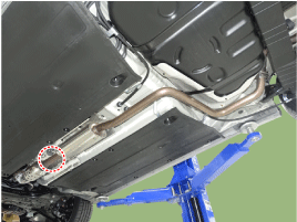 Отсоедините резиновую подвеску (А) от переднего глушителя.