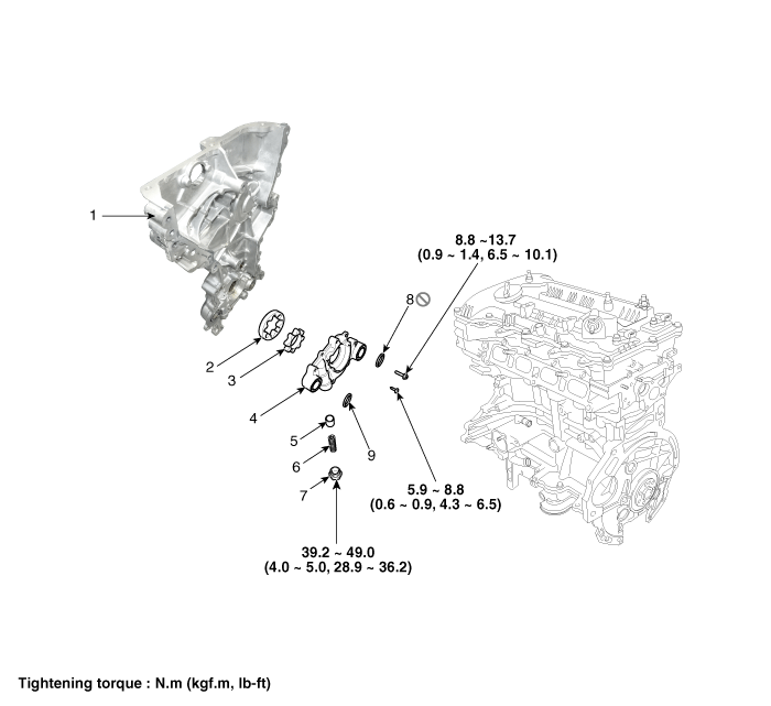 2. Внешний ротор 3. Внутренний ротор 4. Крышка масляного насоса 5. Разгрузочный плунжер |