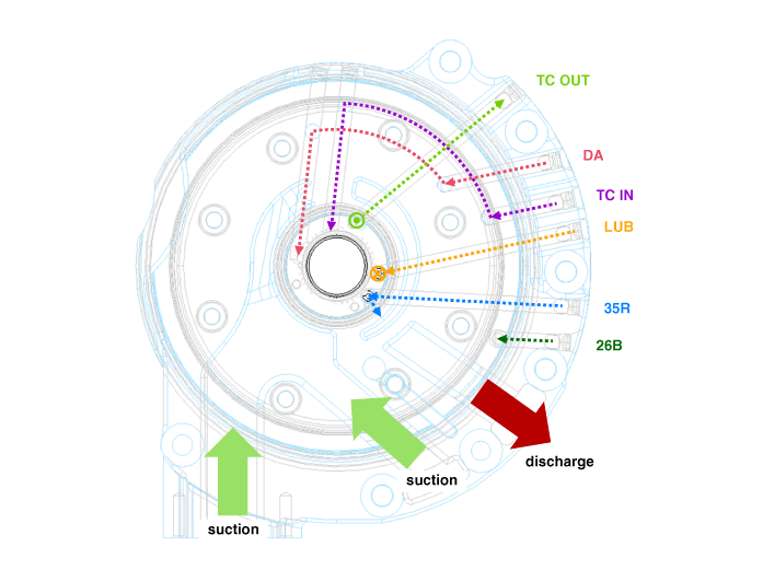 Масляный насос встроен единым блоком с Тормозной камерой 26.