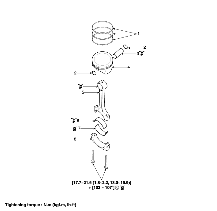Hyundai Elantra: блок цилиндров / компоненты поршня и шатуна и расположение компонентов
