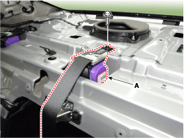 Ослабив крепежные болты, снимите натяжитель заднего центрального ремня безопасности (А).