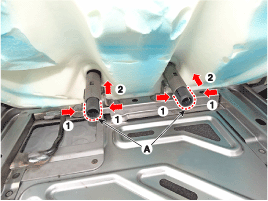 Вытяните направляющие подголовника заднего сиденья (А), зажимая обе стороны нижней части направляющих, и снимите их.