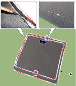 Снимите обивку спинки заднего сиденья в сборе (А) с рамы спинки заднего сиденья.