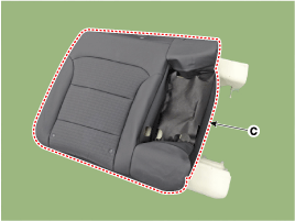внутри чехла подушки заднего сиденья снимите чехол подушки сиденья (C).