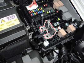 Отсоедините отрицательную (-) клемму аккумуляторной батареи.