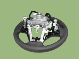 Отсоедините разъем (А) и снимите рулевое колесо, ослабив стопорный болт (А).