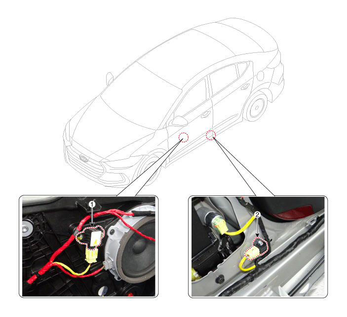 Hyundai Elantra AD (2016-2020) Руководство по ремонту / Сдержанность / SRSCM / Датчик бокового удара (SIS) Компоненты и расположение компонентов